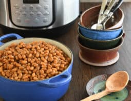 These Instant Pot Baked Beans are always a hit at BBQโs and potlucks. The navy beans hold up well and the bourbon and brown sugar gives these baked beans a little extra flair.