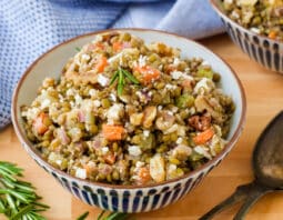 If you enjoy this recipe and want to create more lentil salads, you can experiment with different combinations of nuts, herbs, and cheese so that you will never get bored. For example, you could take this salad in an Italian direction by using pine nuts instead of walnuts, basil instead of rosemary, and fresh mozzarella instead of feta. Whatever combination you choose, you will be amazed at how versatile, sturdy, and satisfying a lentil salad can be.