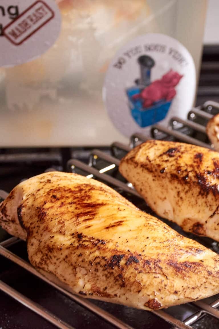 You may think that chicken needs to be cooked to 165°F (74°C) but with sous vide you can hold it at a lower temperature for enough time to make it just as safe to eat. This means your chicken is much more juicy and still perfectly safe to eat!